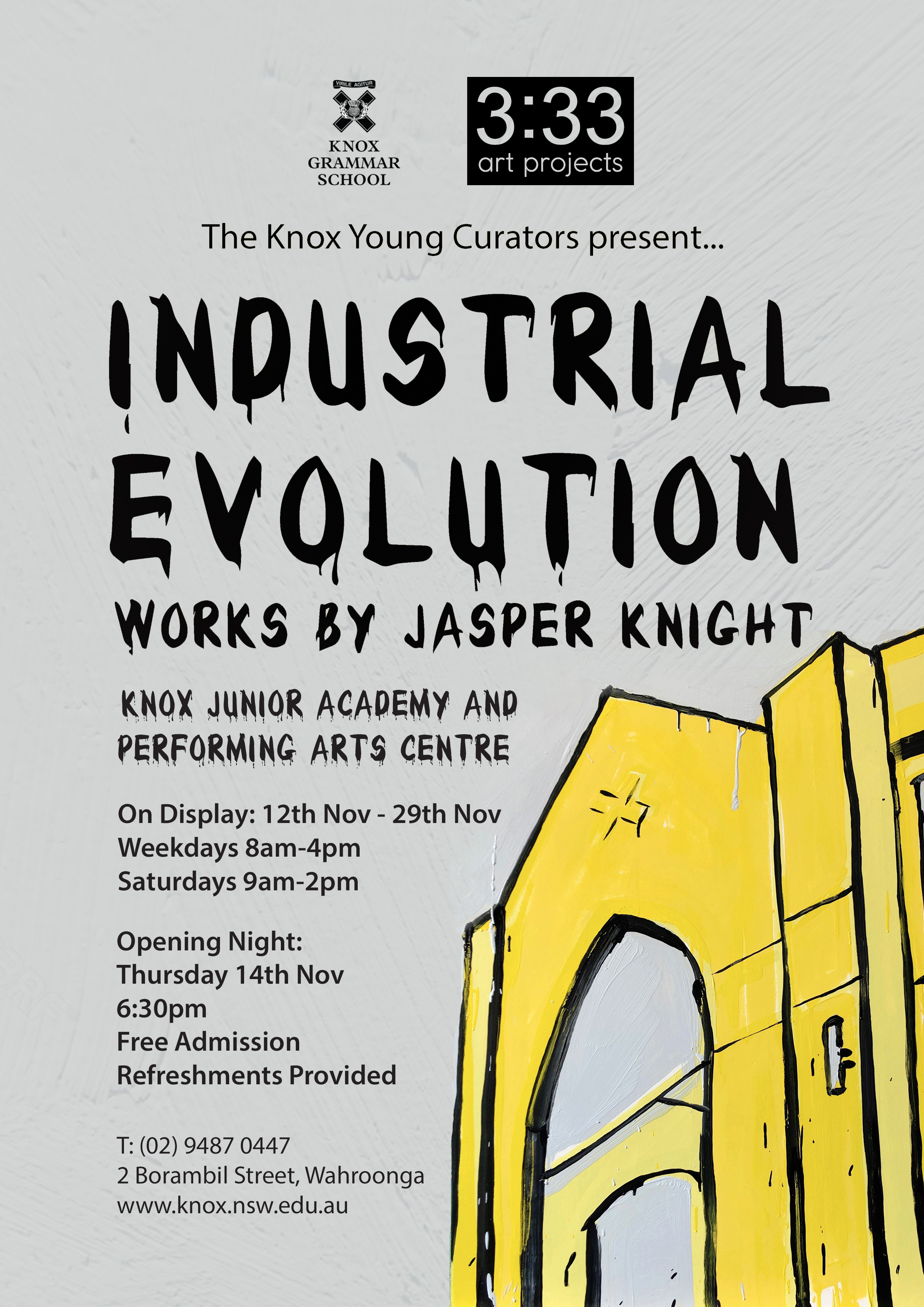 The following students in Year 8 (Alec Germanos, Adam Scott, Brandon Tan, Harry Gordon, Will Solomons), Year 9 (Justin Menso) and Year 12 (Mitchell Volk) are launching an art exhibition previewing the works from Jasper Knight with the theme Industrial Evolution. The exhibition will open with free admission from the 12 to 29 November in the JAPAC building. For further details please click here.