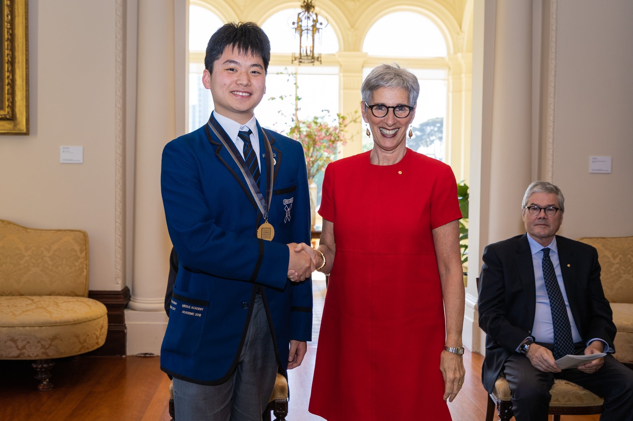 This year, the Australian Mathematics Competition attracted more than 250,000 entries in Australia and overseas. Ethan Ryoo sat the Intermediate Division and achieved an outstanding score relative to competitors in his year. As a result , Ethan was one of four Year 10 medalists who flew to Melbourne last Thursday to receive an award by the Governor of Victoria, Linda Dessau. What an incredible achievement.