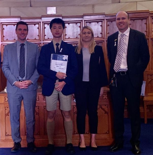 Mr Scott James with Jack Black and Stanley Yeung, the Year 10 Boarder Leaders for Term 4 2019 and Term 1 2020 along with Rev Tim Robinson.