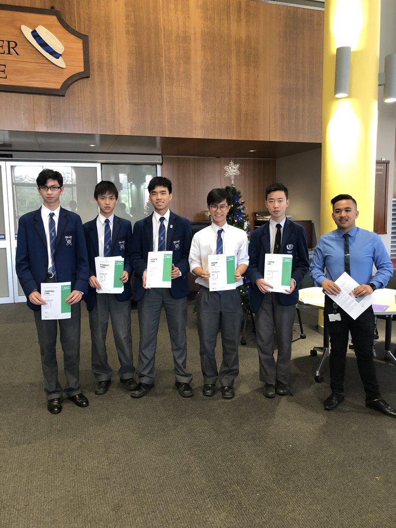 Congratulations to the following boys on their various Science awards - Timothy Leong and Jason Linhe received a High Distinction in Chemistry, Edward Ji and Timothy Leong received a high distinction in Physics, James Stark received a High Distinction - Earth and Environmental Science, Adam Lee and Sean Burhop received a Distinction in Biology, Adam Lee, Yueping Ling, Justin Kim, Hugo Rose, Xavier Singarayar, Timothy Allan, Stanley Tang and Joshua Chen all received a Distinction in Chemistry.